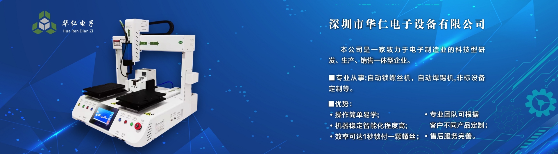 深圳市華仁電子設(shè)備有限公司是一家致力于電子制造業(yè)周邊設(shè)備的科技型研發(fā)、生產(chǎn)、銷售一體的企業(yè),專業(yè)從事:自動(dòng)鎖螺絲機(jī);自動(dòng)焊錫機(jī);非標(biāo)設(shè)備定制機(jī)等,公司長期以來在行業(yè)中積累了豐富的經(jīng)驗(yàn),擁有專業(yè)的研發(fā)、技術(shù)、銷售支持工程團(tuán)隊(duì)、各高級(jí)技術(shù)人才為客戶提供優(yōu)質(zhì)產(chǎn)品和服務(wù),同時(shí)不斷吸取國內(nèi)外先進(jìn)技術(shù),更準(zhǔn)確及時(shí)地為客戶提供優(yōu)質(zhì),性價(jià)比高的產(chǎn)品、公司以專業(yè)的售前、售中、售后服務(wù)贏得了客戶的信賴和好評(píng),為客戶提供先進(jìn)自動(dòng)化設(shè)備一體式解決方案、